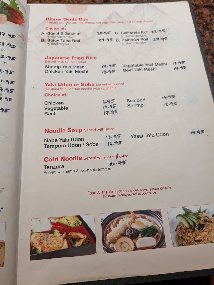 Shrimp udon with soba noodles. Choice of soup or salad.